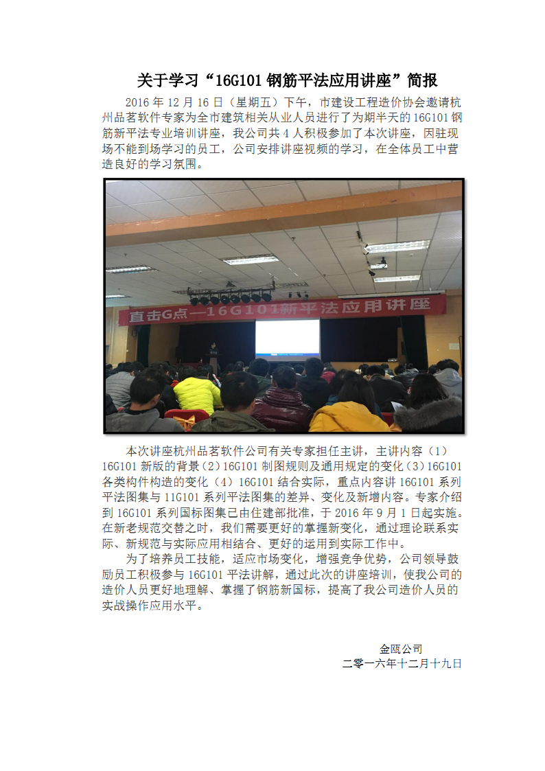 關(guān)于學習“16G101鋼筋平法應(yīng)用講座”簡報