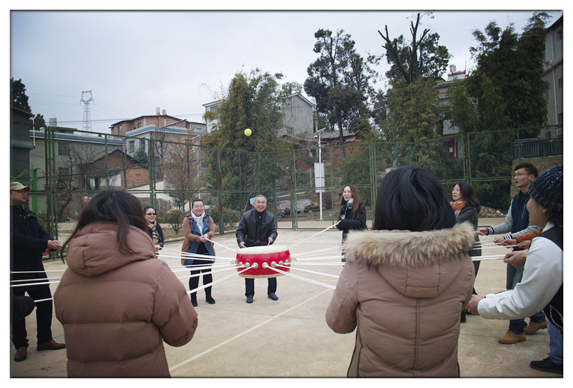 拓展訓練在晨龍生態(tài)農(nóng)場基地進行,活動當天剛好遇到昆明降溫,還飄起了小雪,但是依然阻擋不了我們的腳步。參加人員被隨機分為兩隊,通過集體討論,確定了各自的隊長。在訓練過程中,兩支隊伍展開了激烈的競爭和活潑的互動活動,隊員們都顯示出良好的精神狀態(tài),團隊相互配合、集體協(xié)作,相繼完成了車輪滾滾、擊鼓顛球和10人11足等拓展訓練項目。