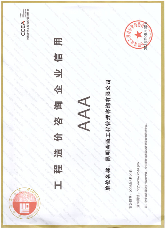 工程造價(jià)咨詢企業(yè)信用AAA證書認(rèn)證—中國建設(shè)工程造價(jià)管理協(xié)會