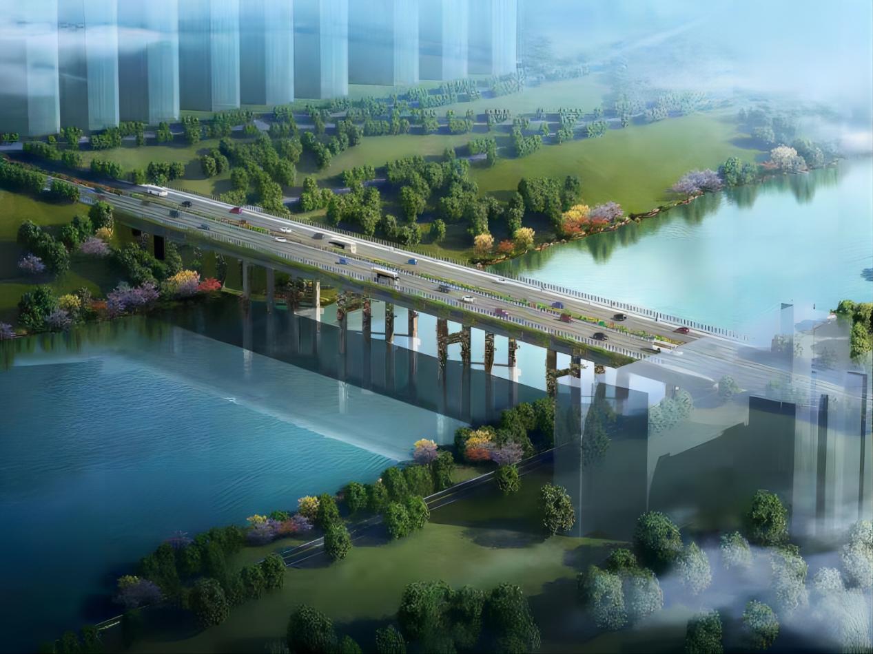 項目概況:項目總投資9614萬元。橫跨流沙河,工程路線全長554.61米,其中橋梁長186.08米,引道長368.53米,大橋跨徑6×30米,上部結(jié)構(gòu)采用30米預應(yīng)力混凝土梁橋。