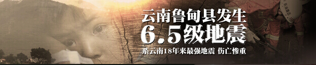 8月3日16時30分,云南省昭通市魯?shù)榭h發(fā)生6.5級地震,震源深度12公里。地震給魯?shù)榭h、巧家縣人民群眾生命財(cái)產(chǎn)造成重大損失。系云南18年來最強(qiáng)地震,傷亡慘重。據(jù)云南省民政廳公布數(shù)據(jù),截至昨天(災(zāi)后72小時):2014年8月6號10點(diǎn)30分,地震造成昭通市魯?shù)榭h、巧家縣、昭陽區(qū)、永善縣和曲靖市會澤縣108.84萬人受災(zāi),589人死亡,而前晚(災(zāi)后48小時)這個數(shù)字還是410人。災(zāi)情牽動著每一位中國人的心。