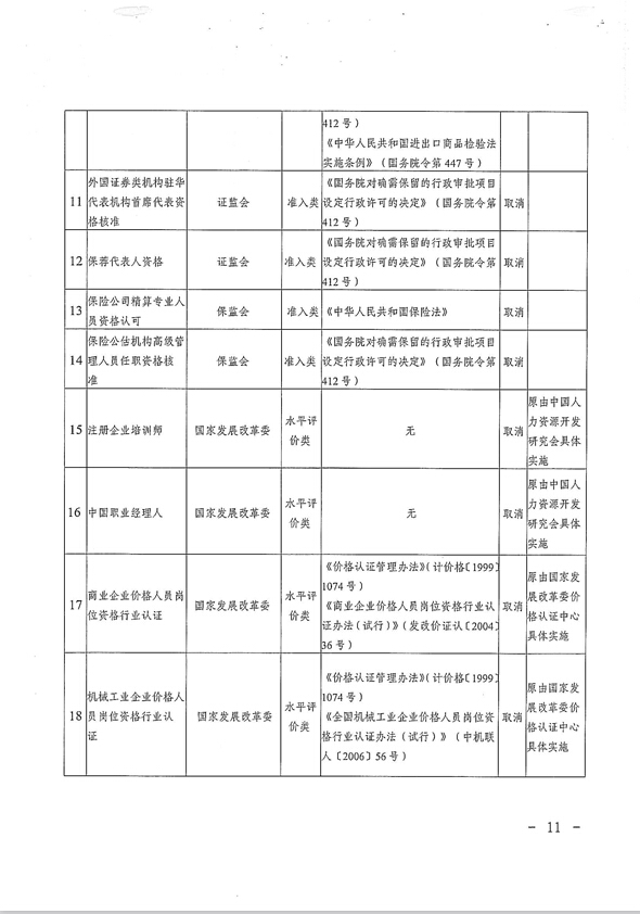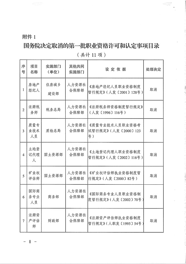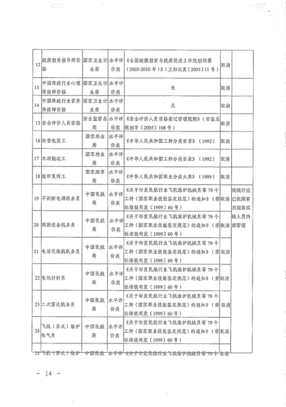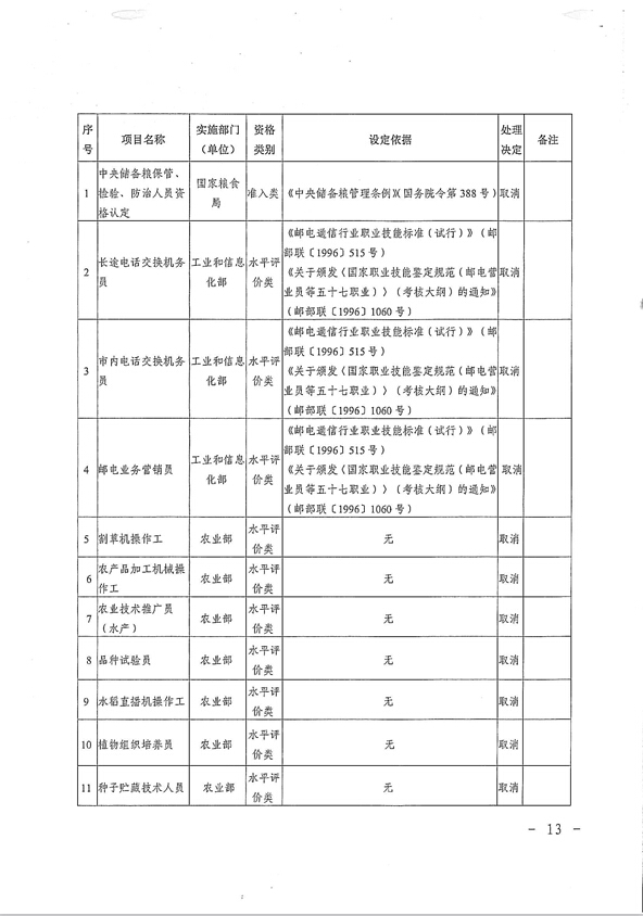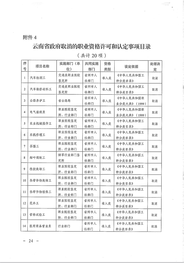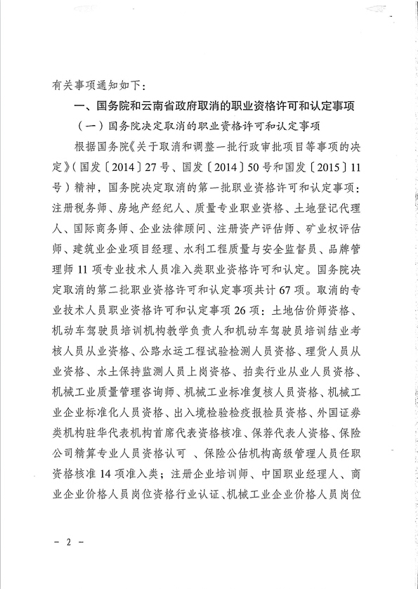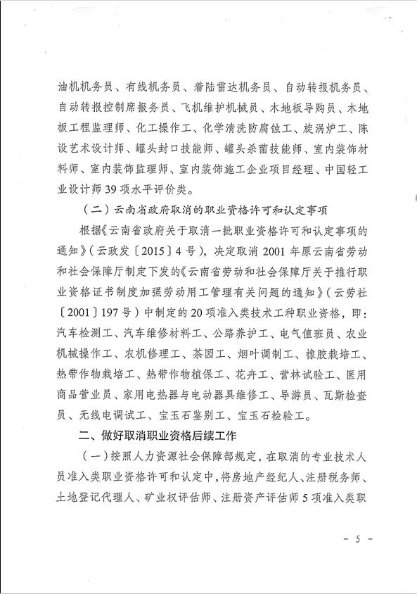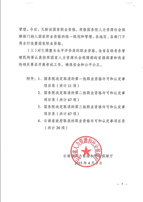 省人力資源和社會保障廳關于貫徹落實國務院云南省政府取消職業(yè)資格許可和認定有關事項的通知